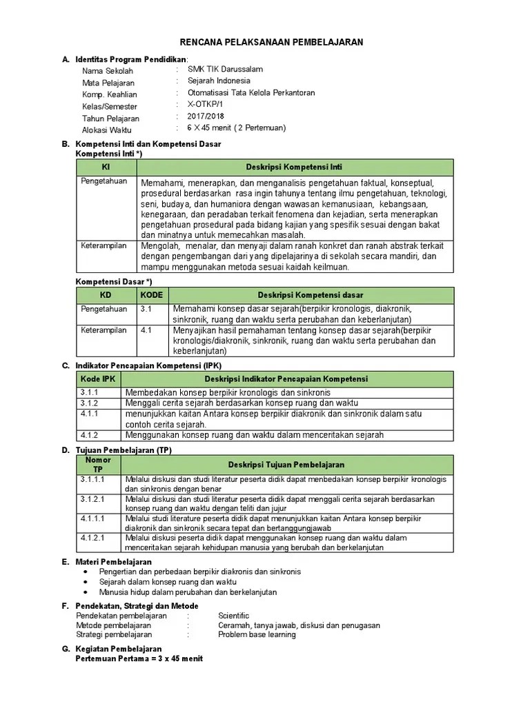 Contoh rpp sejarah indonesia 1 lembar kelas x tahun ajaran 2020/2021 akan kami bagikan untuk ibu dan bapak guru yang membutuhkan rpp 1 lembar .